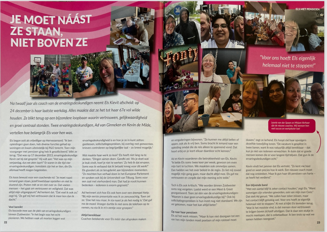 Vandaag is de laatste werkdag van Els Kievit bij Zuidwester. In het blad ‘Windkracht’ van Zuidwester wordt er uitgebreid bij stil gestaan. Zie hieronder de foto’s van het artikel.