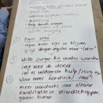 We zijn aan de slag gegaan met een vraagstuk vanuit de klankbordgroep, namelijk ‘De ouder wordende cliënt’. Eerst met z’n allen opgestart, daarna de groep in 4 groepen verdeeld en aan de slag gegaan met het beantwoorden van vier kernvragen.