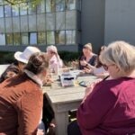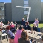 In de middag vielen we met onze neus in de boter. Het zonnetje begon te schijnen. De bestuurder van SDW, Ingrid van Huijkelom, kwam nog even langs om iedereen persoonlijk welkom te heten, en daarna zijn we buiten lekker aan de slag gegaan met het versieren van papieren potjes om ze daarna te voorzien van zand en zaadjes.